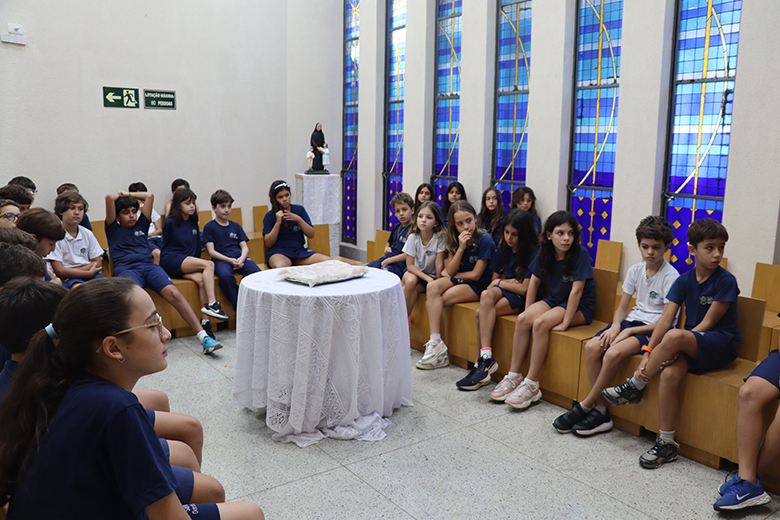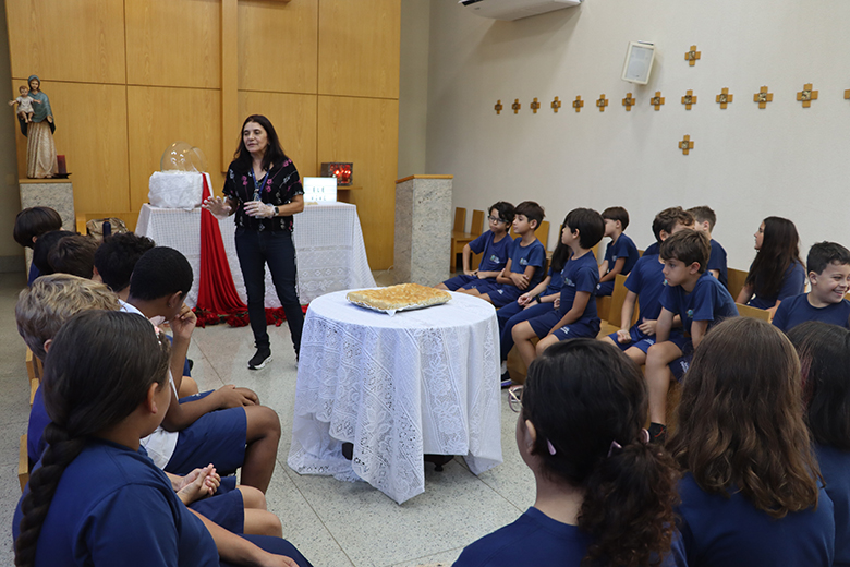 Na Capela, as turmas do 4º e 5º Anos/EF vivenciaram a partilha da focaccia, tradicional pão italiano que remonta à história da fundação da Congregação das Irmãs Doroteias, como forma de se conectar à última ceia de Jesus, de maneira especial e significativa.
